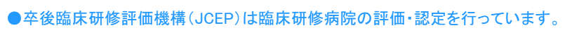 全国に 1000病院以上ある基幹型臨床研修病院のうち、JCEPの行う臨床研修評価を受審し、その結果が JCEPの定める認定基準を達成している場合は、認定証を発行します。